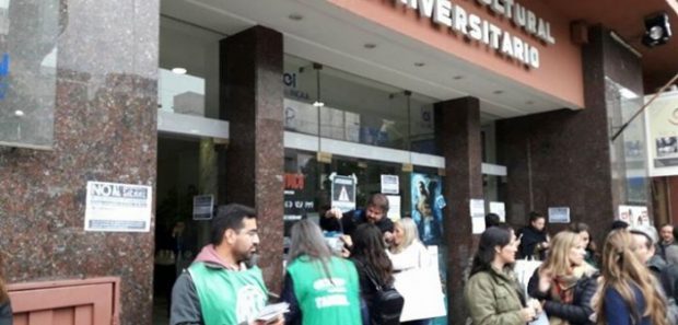 Trabajadores de los centros de juego de la Provincia de Buenos Aires llevaron a cabo, una volanteada en la puerta del primer congreso de salud mental y adicciones que llevaba adelante el gobierno de María Eugenia Vidal en Tandil, expresando la preocupación sobre el posible cierre de los centros de ludopatía y el formato irregular que tienen los...