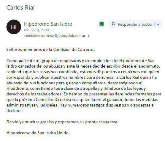 Esperemos que los miembros aún conscientes de la Comisión Directiva actual (de hecho el club se encuentra en su mayor cisma luego del alejamiento forzado de Bruno Quintana, y se podría decir que al borde de la quiebra política y económica, con una fuerte necesidad de sinceramiento y re-fundación de principios y objetivos), y de los casi cuatro mil socios que no tienen relación con el área Carreras (y que solo se enteran de sus desmanejos por las denuncias anónimas vertidas en estos medios), denuncien las actividades ilegales que ocurren dentro de sus instalaciones, y como cualquier empresa hagan rendir cuentas a los gerentes que apoyados por unos pocos directivos han destruído el prestigio y la economía del Club sin el más mínimo control, aún continúan en sus funciones.